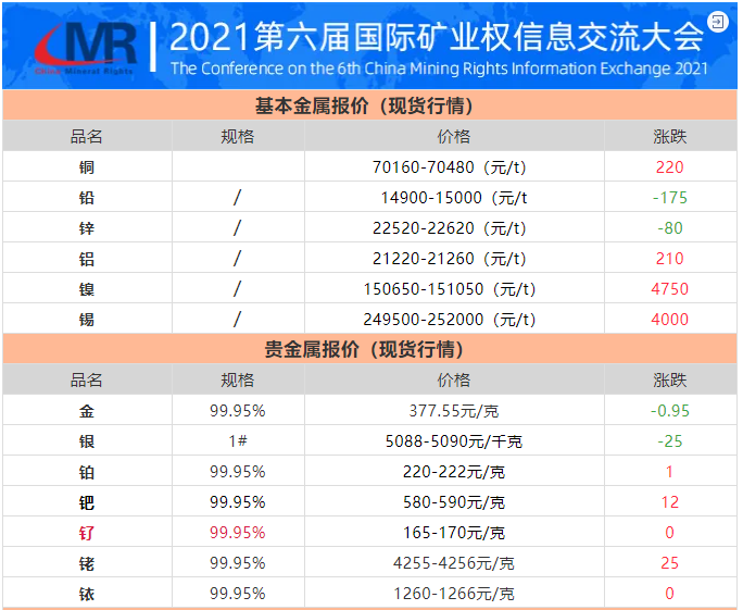 2021年8月31日金屬、非金屬礦產(chǎn)品報價